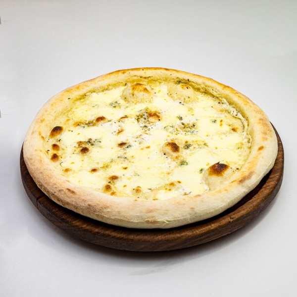 Пицца, известная своей удивительной вкусовой гаммой и богатым составом: домашний сыр Моцарелла, ароматный сыр Дорблю, сыр Гауда, сыр Cremette.