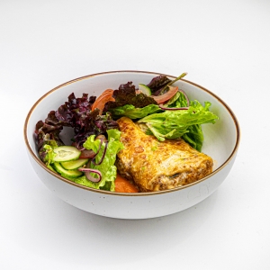 Одно из самых старинных блюд итальянской кухни, слоеная запеканка из слайсов теста с начинкой на основе соуса Бешамель и Болоньезе и ароматного сыра Пармезан. Подается с томатным соусом и миксом салата.