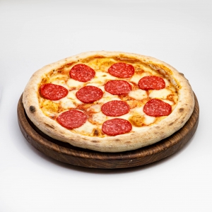 Самая популярная в мире пицца, в составе которой нет ничего лишнего: томатный соус, домашний сыр Моцарелла, копченая телячья колбаса и оливковое масло.