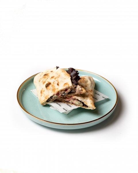 Ароматная фокачча с тунцом, свежими овощами, хрустящим салатом и яйцом — лёгкий и сытный перекус в итальянском стиле.